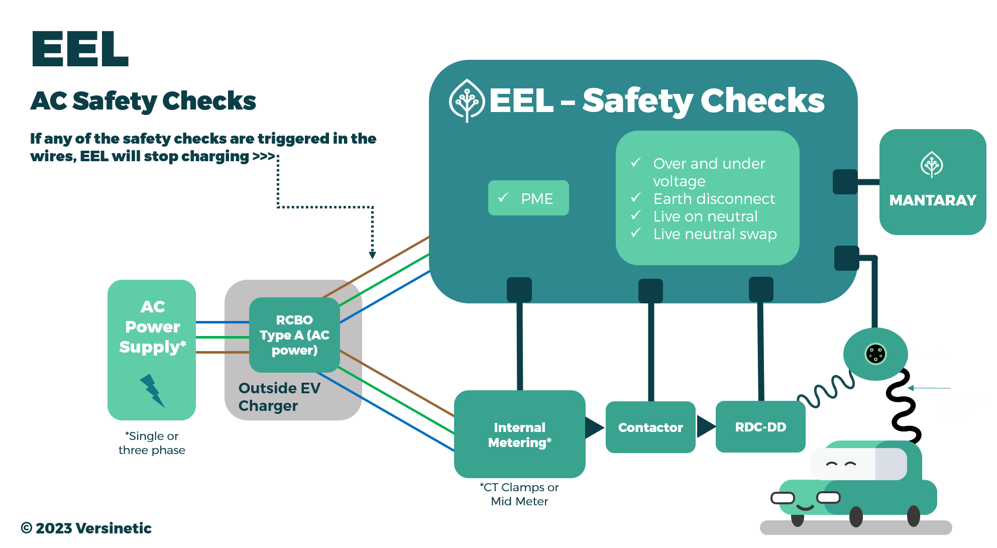 EEL has some inherent safety procedures that it performs before and during charging. These are to both to protect the user and the vehicle