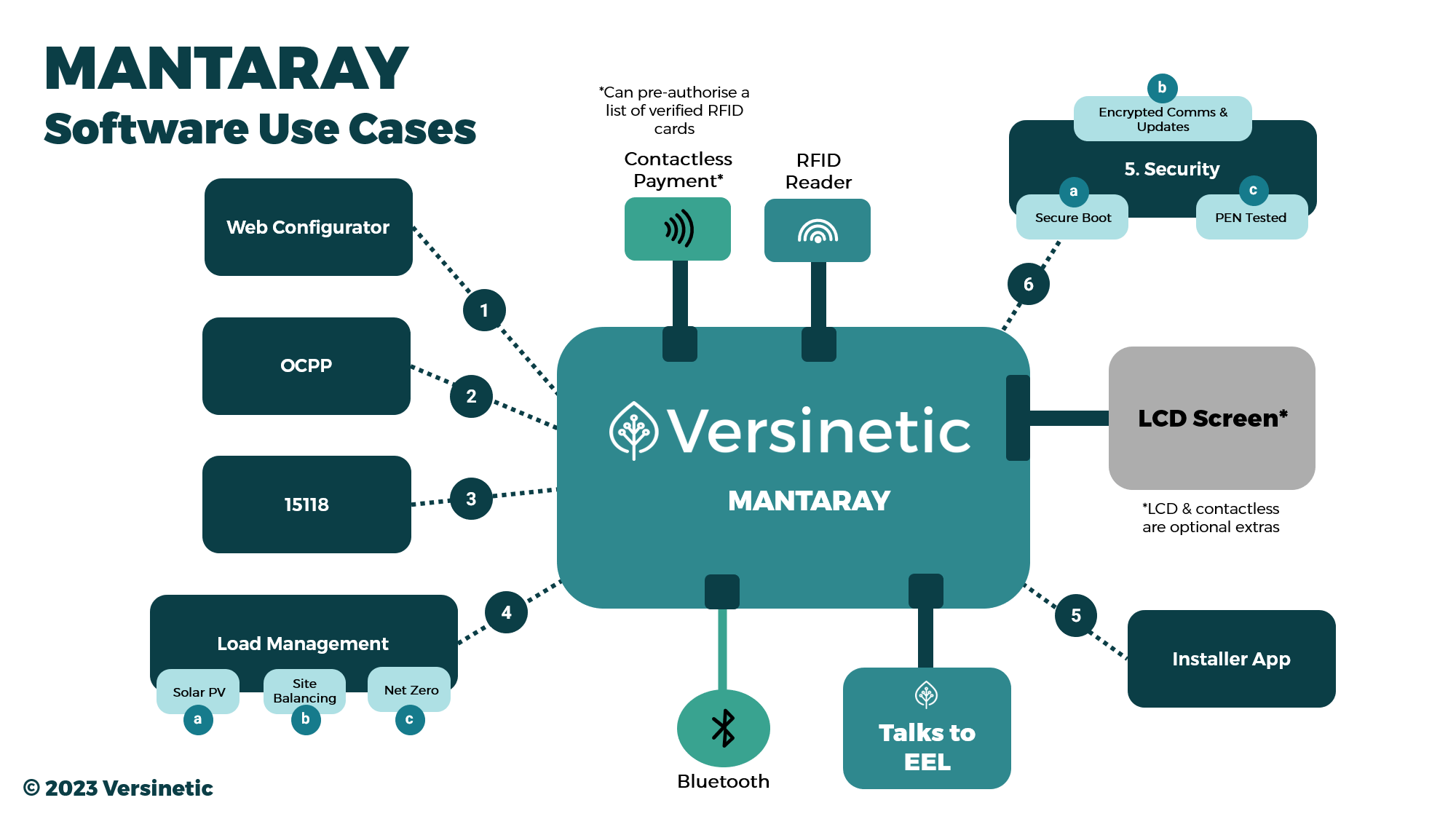 MANTARAY has a large number of customisable software features that can be turned on and off programmatically to fit the use case of the given charger. This includes things such as using RFID for authentication, connecting to a back office for remote control diagnostics, making the most out of a solar PV installation to reduce excess energy going back into the grid and the ability to have multiple connectors (dual socket charger vs single socket).