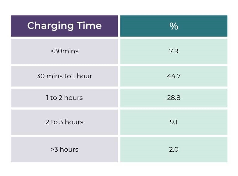 Time spent by EV drivers at public charging stations. Source, Charging on the Go industry survey, Versinetic