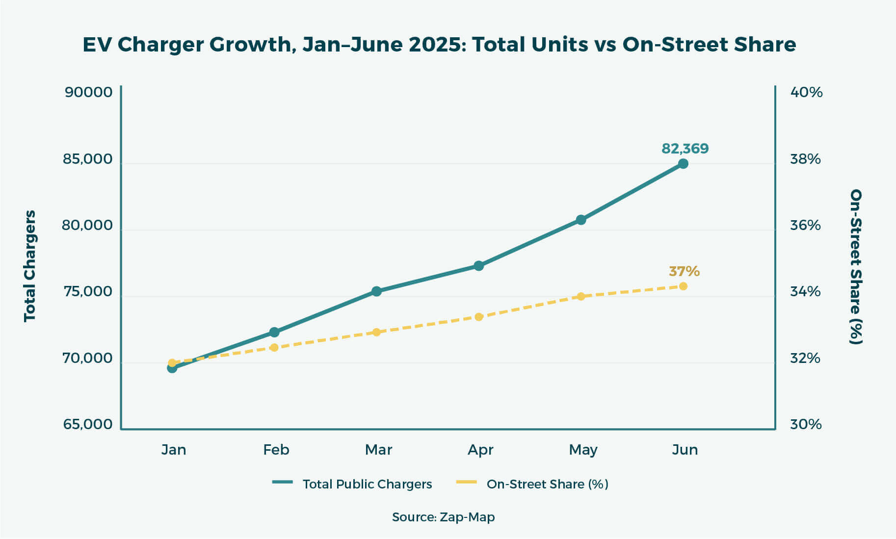 By 30 June, total chargers reached 82,369 across 40,479 locations, with 1,371 added in June alone, according to Zap-Map.